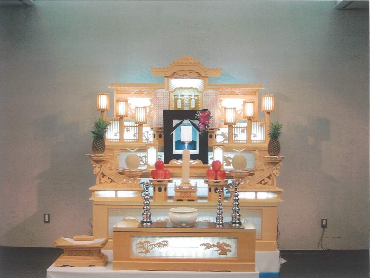 大きな白木祭壇で