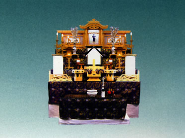 金襴三段の祭壇を用いた